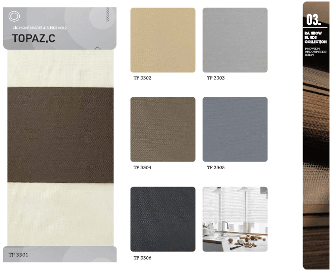 Rèm cầu vồng EcoHome mã TOPAZ là sự kết hợp tinh tế giữa thiết kế hiện đại và công năng điều chỉnh ánh sáng linh hoạt. Với cấu tạo hai lớp vải đan xen – một lớp vải cản sáng và một lớp vải xuyên sáng – rèm cầu vồng mang lại khả năng điều tiết ánh sáng hoàn hảo, vừa tạo điểm nhấn trang trí, vừa đảm bảo sự riêng tư cho không gian sống và làm việc.